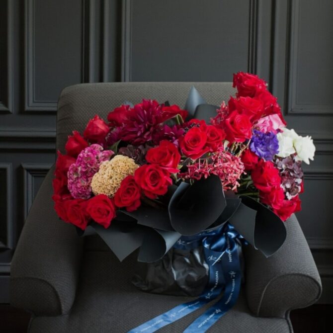 季節のお花を重ね合わせ他にはないラグジュアリーなブーケをおつくりします